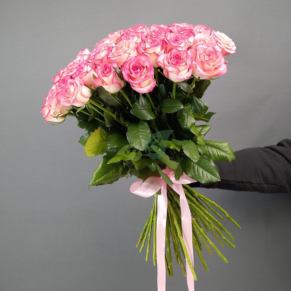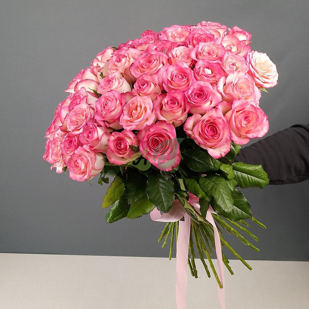 • Роза - 51 штука, цвет - бело-розовый, длина стебля - 60 см;
