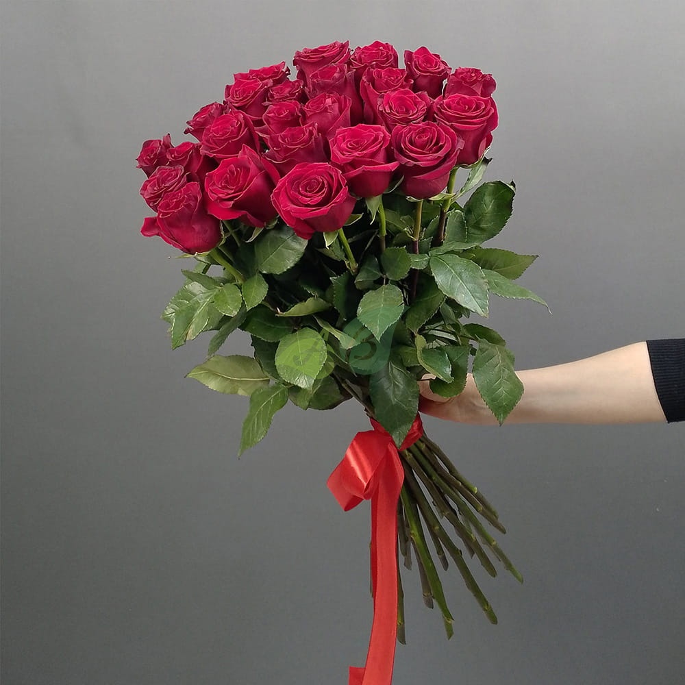 Красные розы на длинной ножке в букете издавна считались символом любви и уважения. Роскошный красный бутон подчёркивает изысканность и великолепие каждого цветка. Ни одно сердце не сможет устоять против такого шикарного букета!
